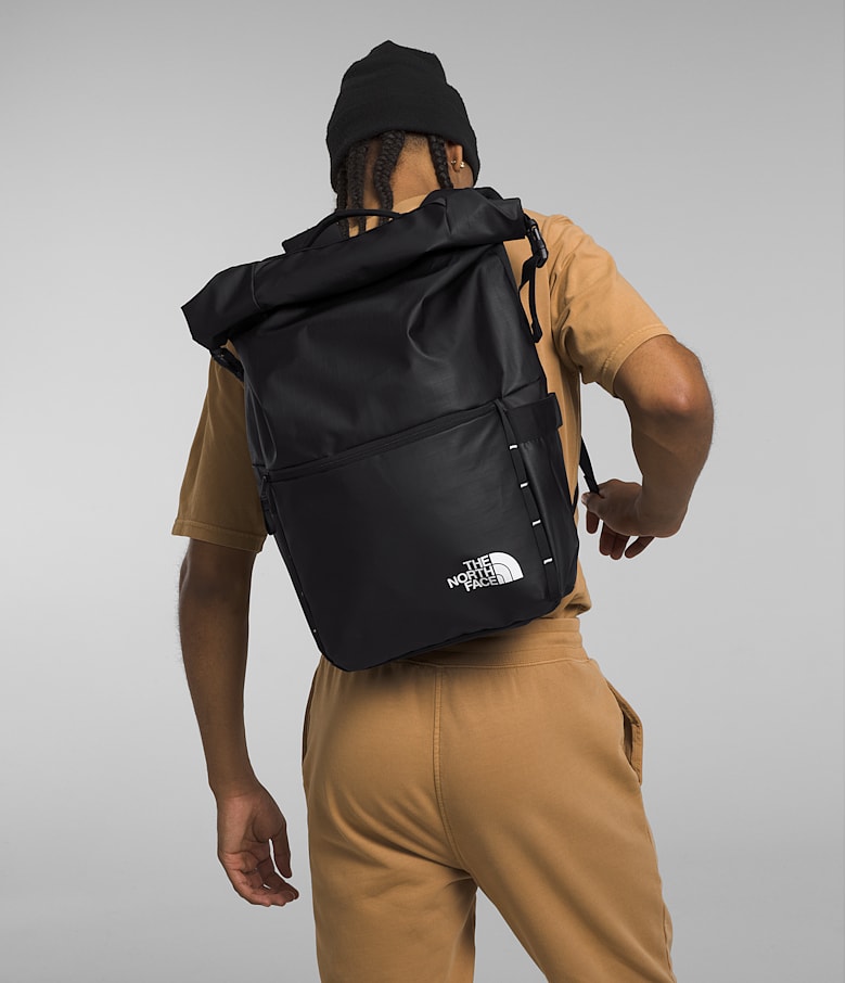 - Roll-top bag features our iconic water- and abrasion-resistant Base Camp Voyager fabric
